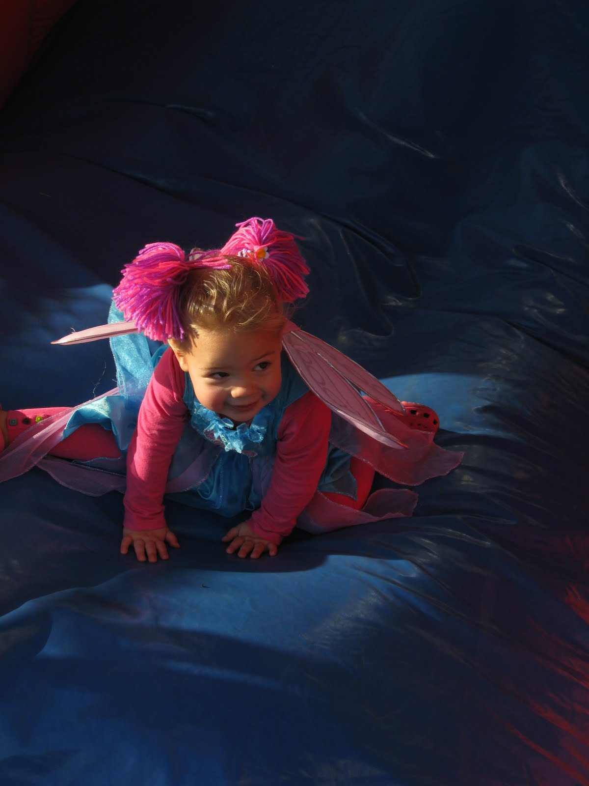 Our next stop were the inflatables. Kate saw this huge Noah's Ark Obstacle Course inflatable and immediately walked right in. We didn't even have time to give the lady tickets. She was already inside jumping around...